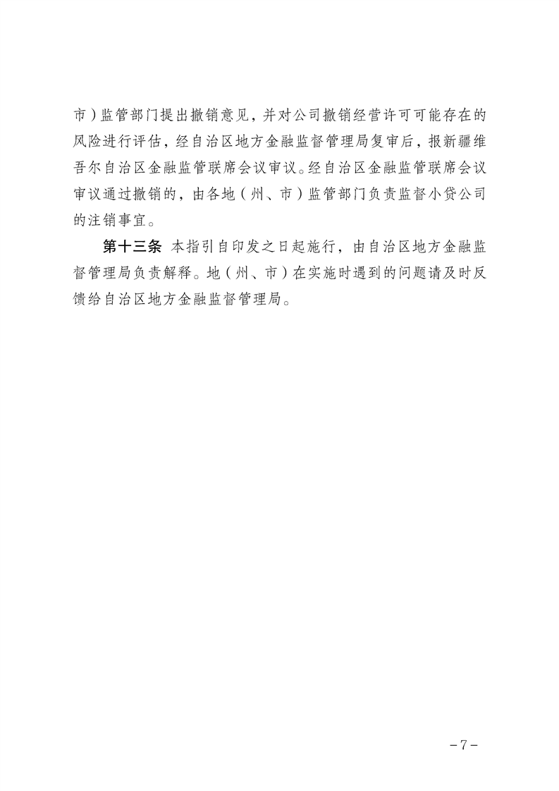 新疆维吾尔自治区小额贷款公司减少注册资本及撤销经营许可工作指引(试行)
