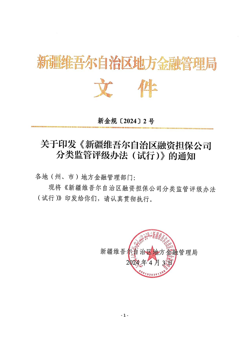 关于印发《新疆维吾尔自治区融资担保公司