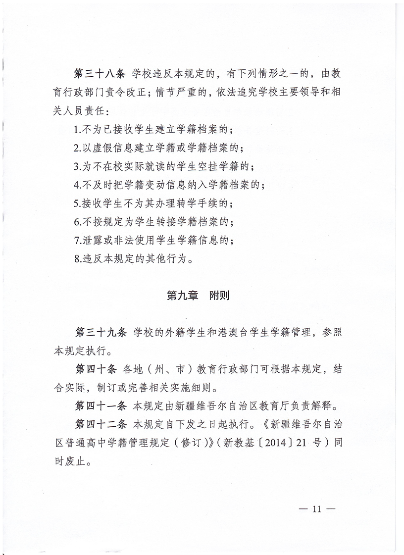 标题:关于印发《新疆维吾尔自治区普通高中学生学籍管理规定》的通知