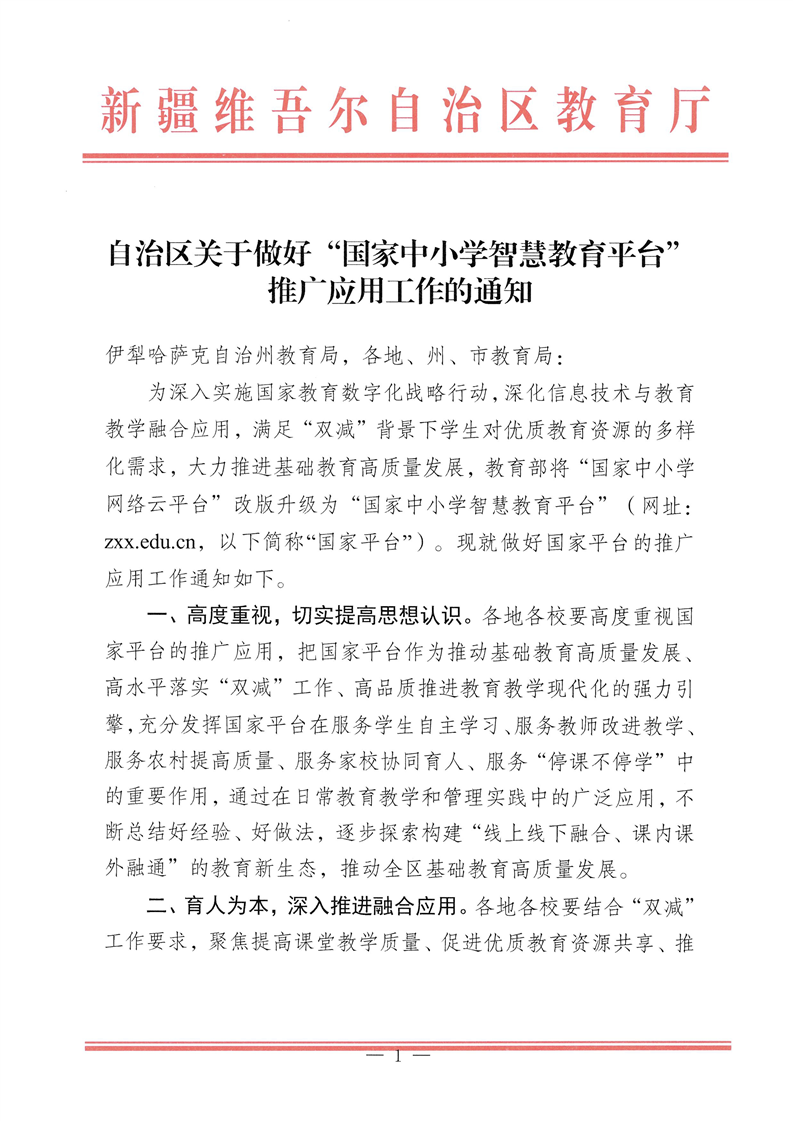 标题:自治区关于做好“国家中小学智慧教育平台”推广应用工作的通知
