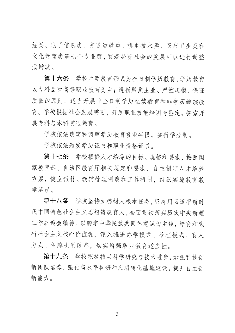 新疆维吾尔自治区高等学校章程核准书第39号(博尔塔拉职业技术学院)