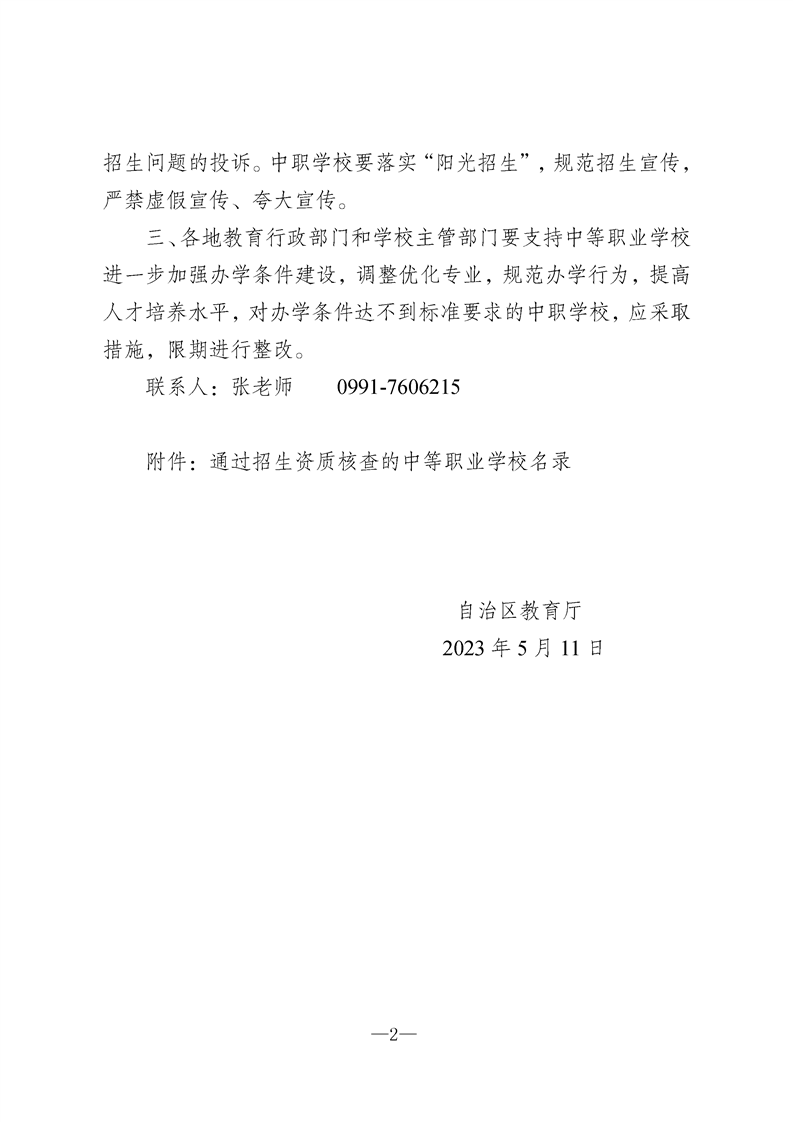 标题:关于公布2023年自治区具备学历教育招生资质的中等职业学校名录的通知