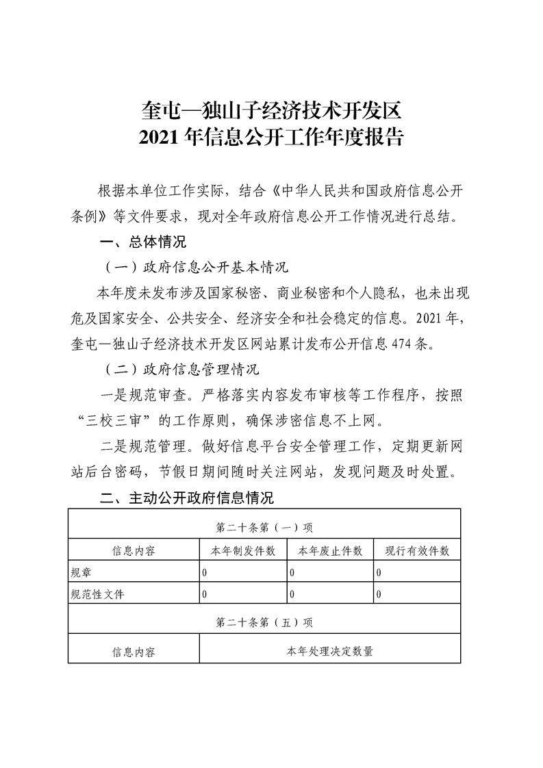 奎屯—独山子经济技术开发区网站2021年度信息公开工作报告