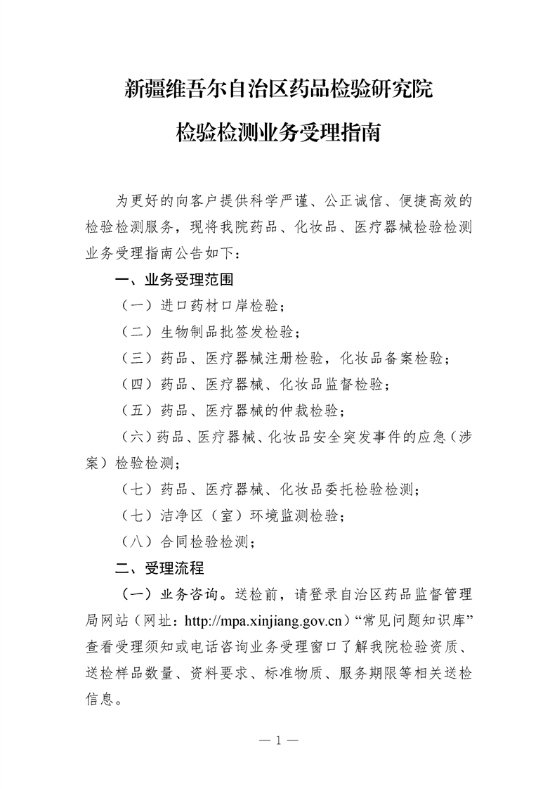新疆维吾尔自治区药品检验研究院检验检测业务受理指南