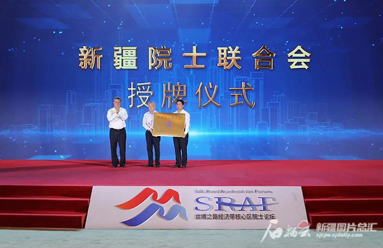 7月18日,“丝绸之路经济带核心区—产业振兴 创新发展”院士论坛上举行新疆院士联合会授牌仪式。石榴云/新疆日报记者 崔志坚摄