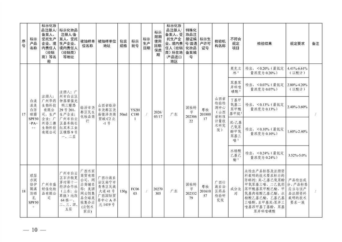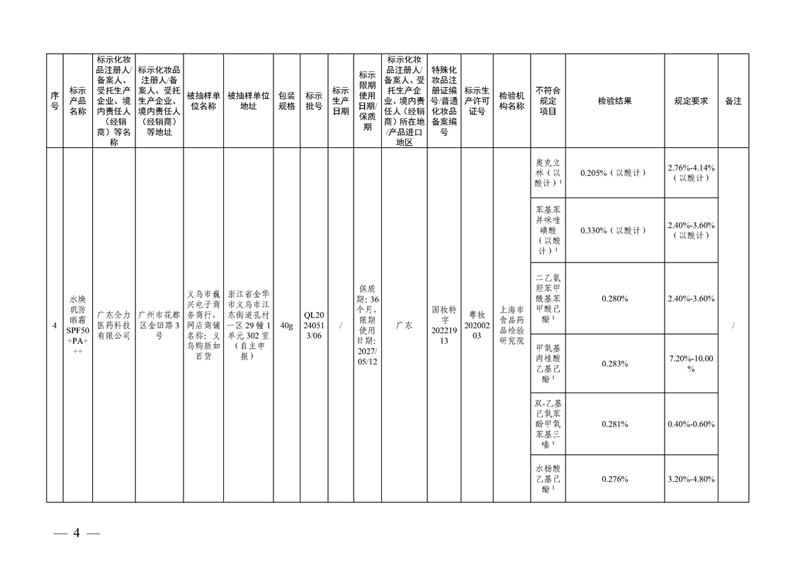 国家药监局关于40批次不符合规定化妆品的通告(2024年第52号)