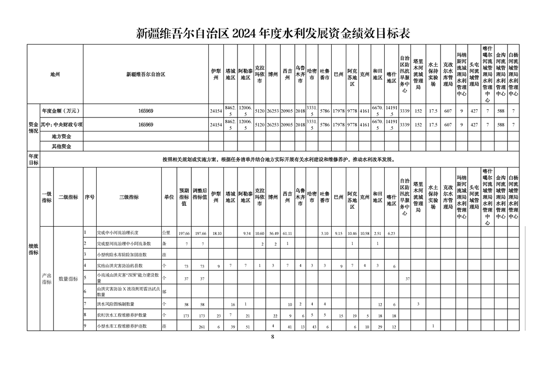 新疆维吾尔自治区水利发展资金转移支付2024年度绩效自评报告