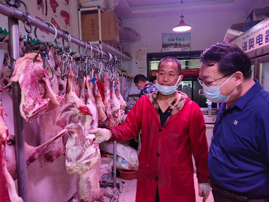 为认真做好古尔邦节期间生活必需品市场保供及安全生产工作,7月20日上午,自治区商务厅党组成员、副厅长刘斌带领相关处室同志赴乌鲁木齐市天山区碱泉三街蔬菜市场、大湾北路社区牛羊肉店、社区蔬菜副食品直销点、大湾南路万达漠尔通超市对市场保供、安全生产等工作进行调研指导。调研中,刘斌副厅长向蔬菜市场、牛羊肉店、直销点及超市负责人详细了解蔬菜、牛羊肉、蛋奶等重要生活必需品的价格、质量、货源、保供等有关情况,详细了解蔬菜市场基础设施、水电安全等情况。刘斌副厅长要求,要持续绷紧安全生产这根弦,不能有懈怠放松、麻痹大意的思想;要结合节日期间市场消费特点,做好蔬菜、牛羊肉市场供应;要严把食品安全关,严格落实各项疫情防控措施,切实保障广大市民“舌尖上的安全”,让市民度过一个欢乐祥和的古尔邦节。