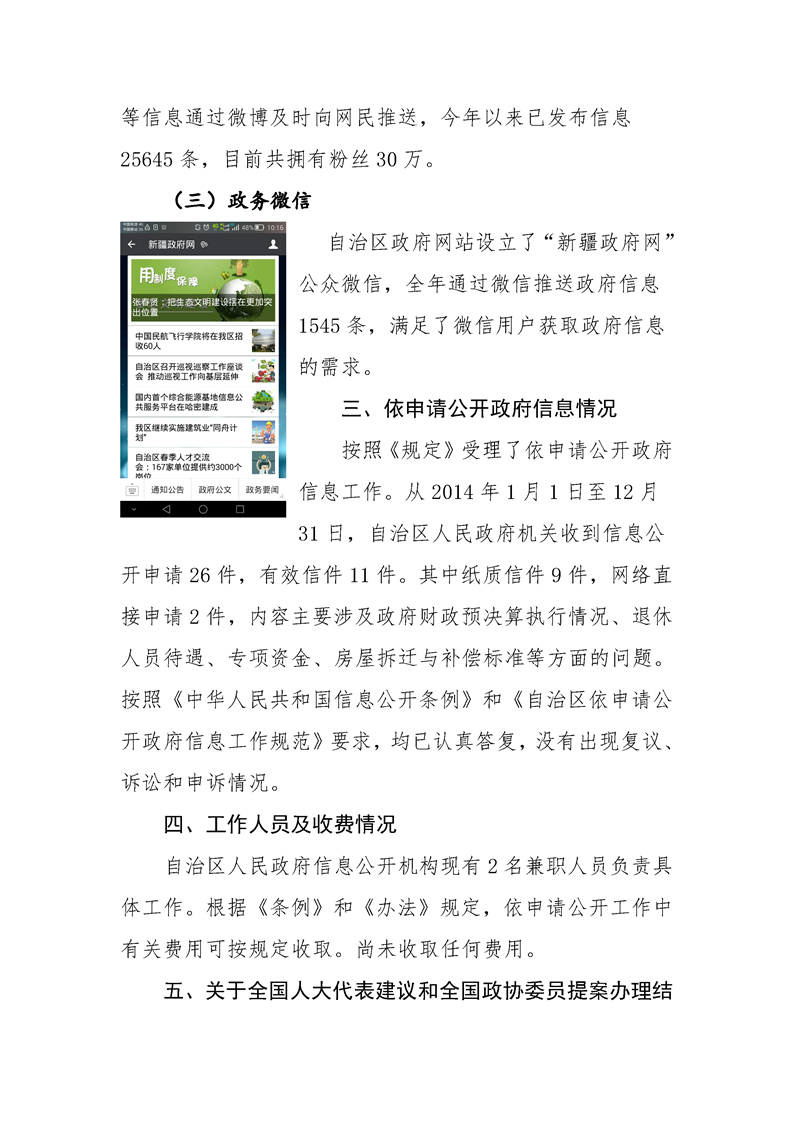 新疆维吾尔自治区人民政府机关2015年度政府信息公开工作报告