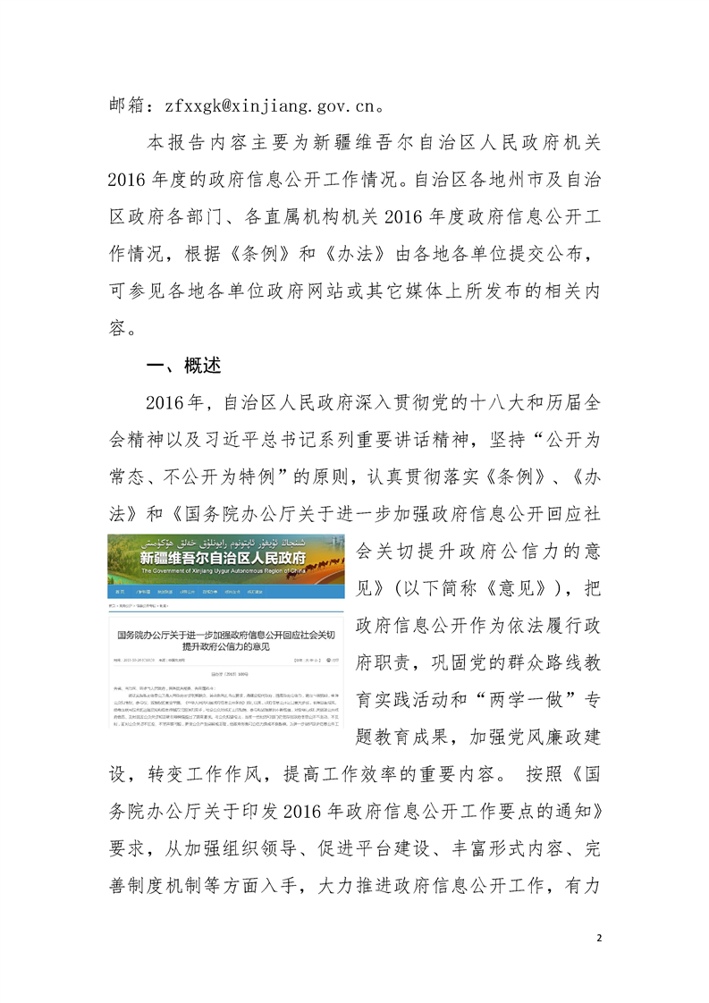 新疆维吾尔自治区人民政府机关2016年度政府信息公开工作报告