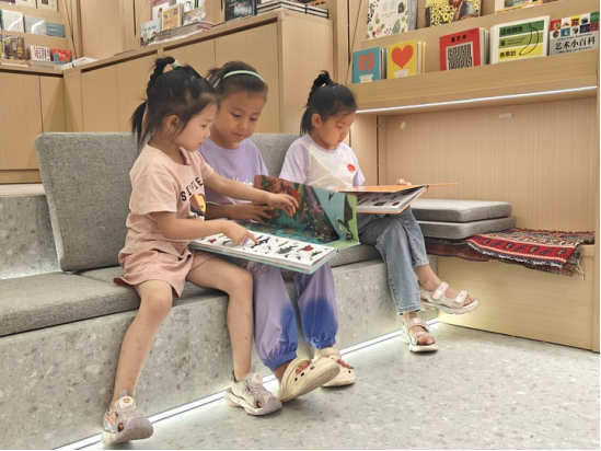 今年8岁的小学三年级学生阿莉娅·艾合买提靠在书柜上,拿起一本绘本,边看边读了起来。“放暑假了,我写完作业就跑过来看书。”阿莉娅忽闪着大眼睛告诉记者。