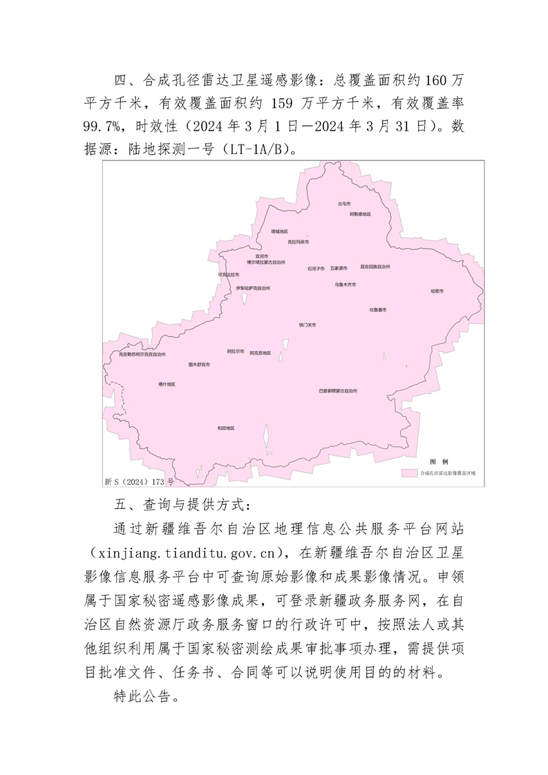 新疆维吾尔自治区2024年3月份遥感影像获取情况公告